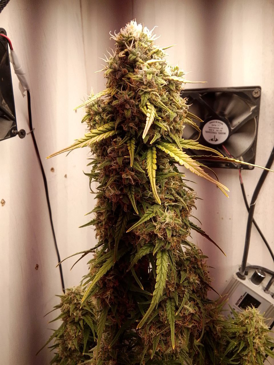 Очень позитивное растение. Было легко растить. Я попытался делать фимминг, но это не удалось, и она выросла нормальной с одним основным стеблем. Цветки сплошь покрыты трихомами. Хороший расслабляющий кайф. Не слишком головокружительный. Больше склоняется к индике.
