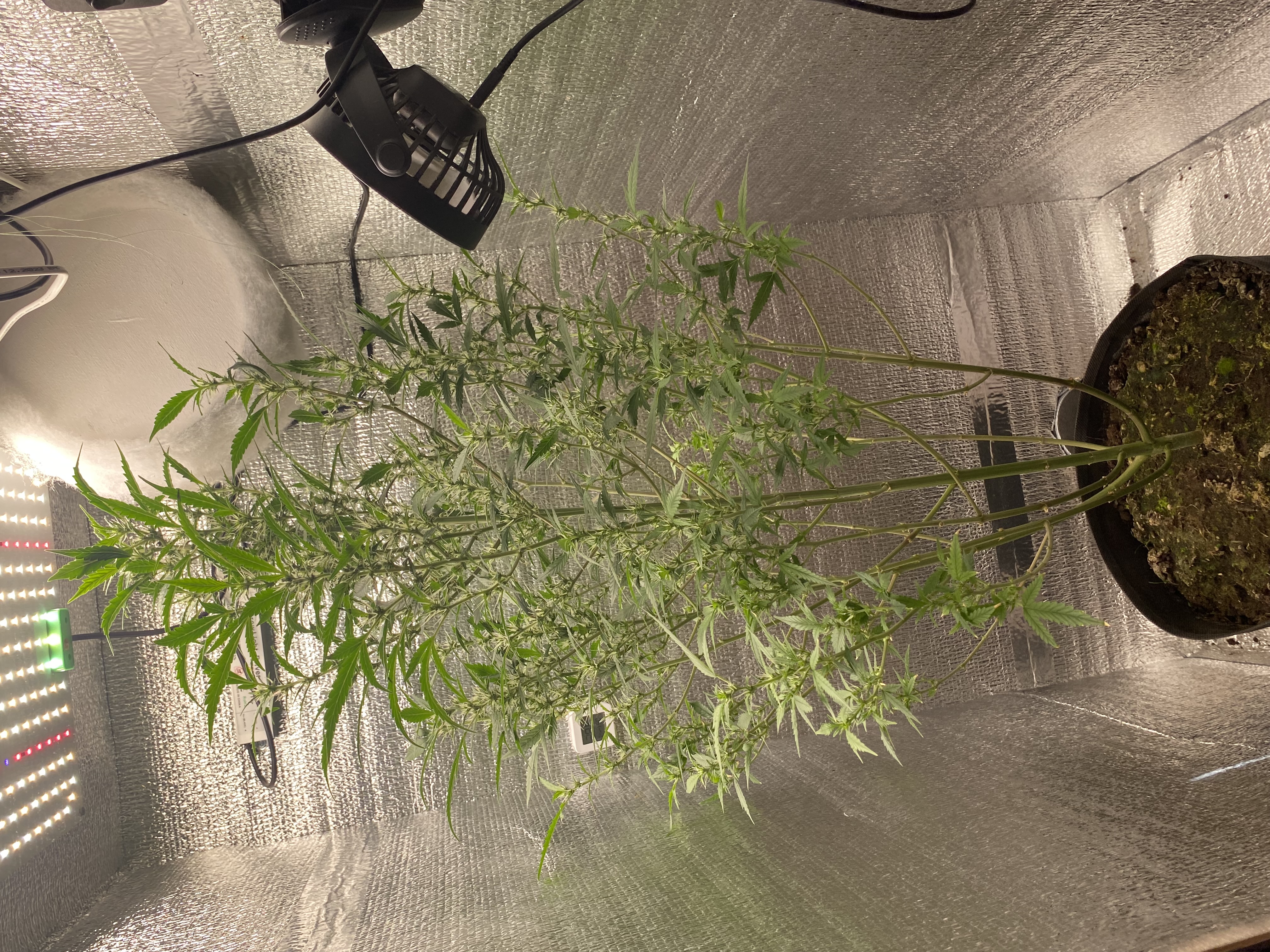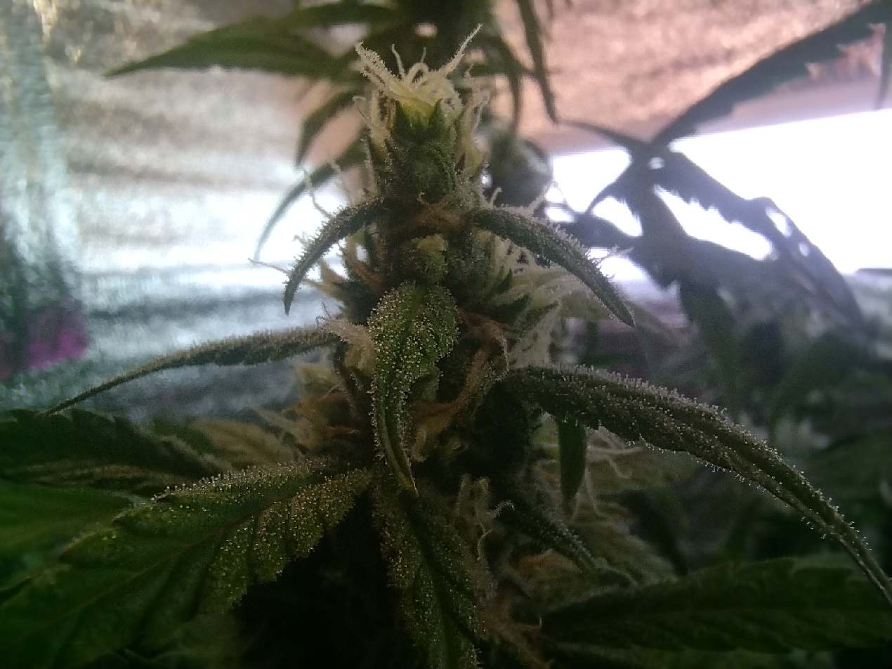 47 день от посадки, последний полив delta9. На веге лил NPK 18:18:18 (2раза) С самого начала азот А ну и Co2 пакетик висит