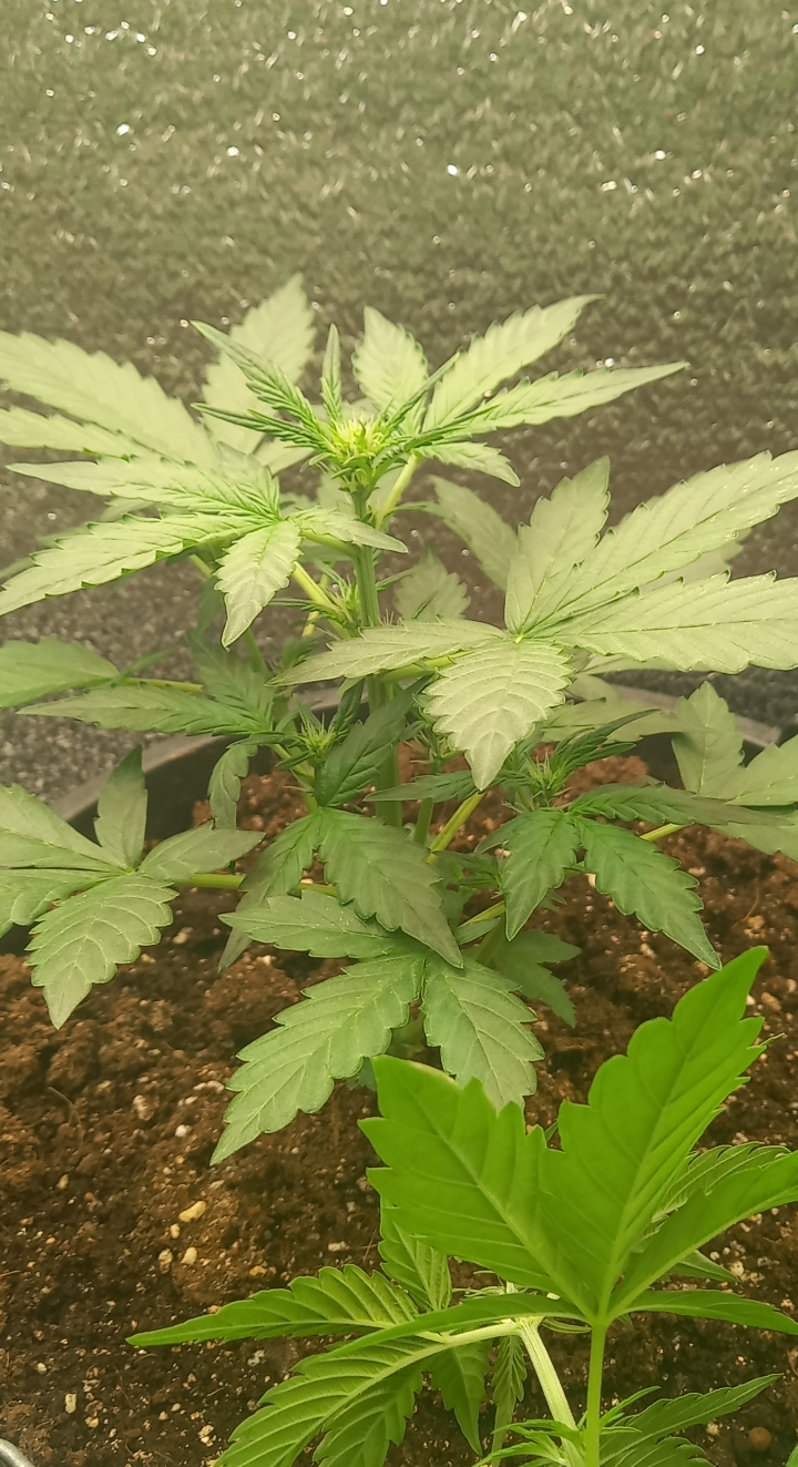 На фото девочке 56 дней от каски.Реверс,Буйские,Минифермер 200 Вт.Отличная генетика,растёт можно сказать прямо на глазах.Я думаю в паспортные 60-65 дней уложится.Понятное дело в ауте период созревания будет не менее 80 дней.Хорошее,смолистое,умеренно пахнущее растение.Пробовал с вапорайзера Duncan,прямо сырую,очень понравился вкус и эффект.На момент пробы преобладал индюшный эффект.На харве,после проблески возможно дополню отзыв.Рекомендую!!!