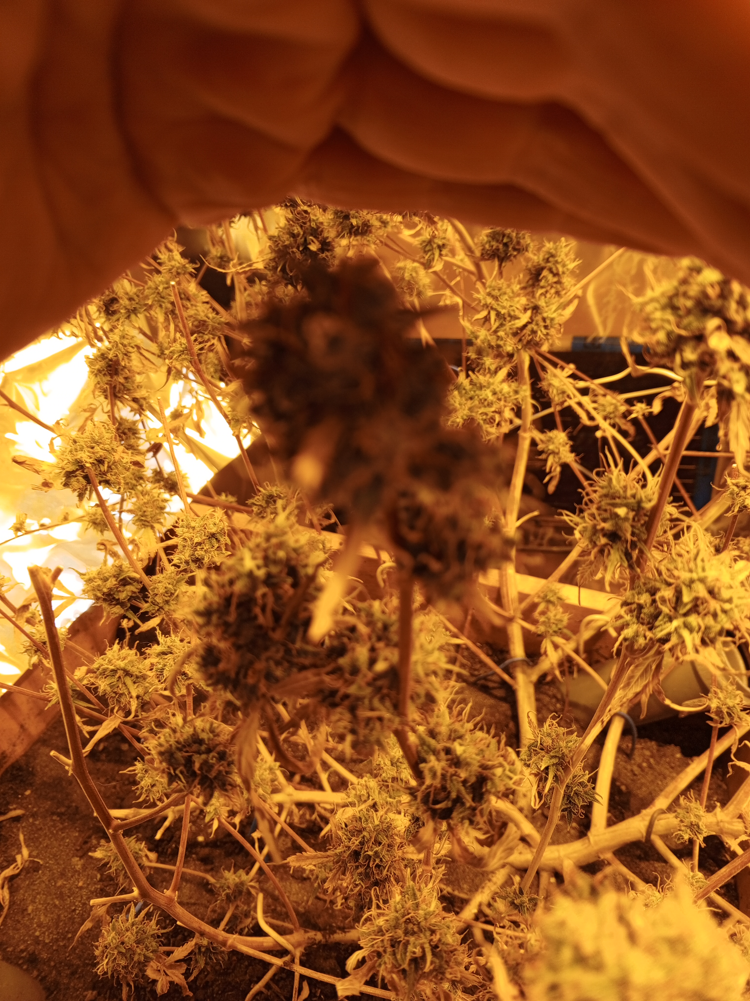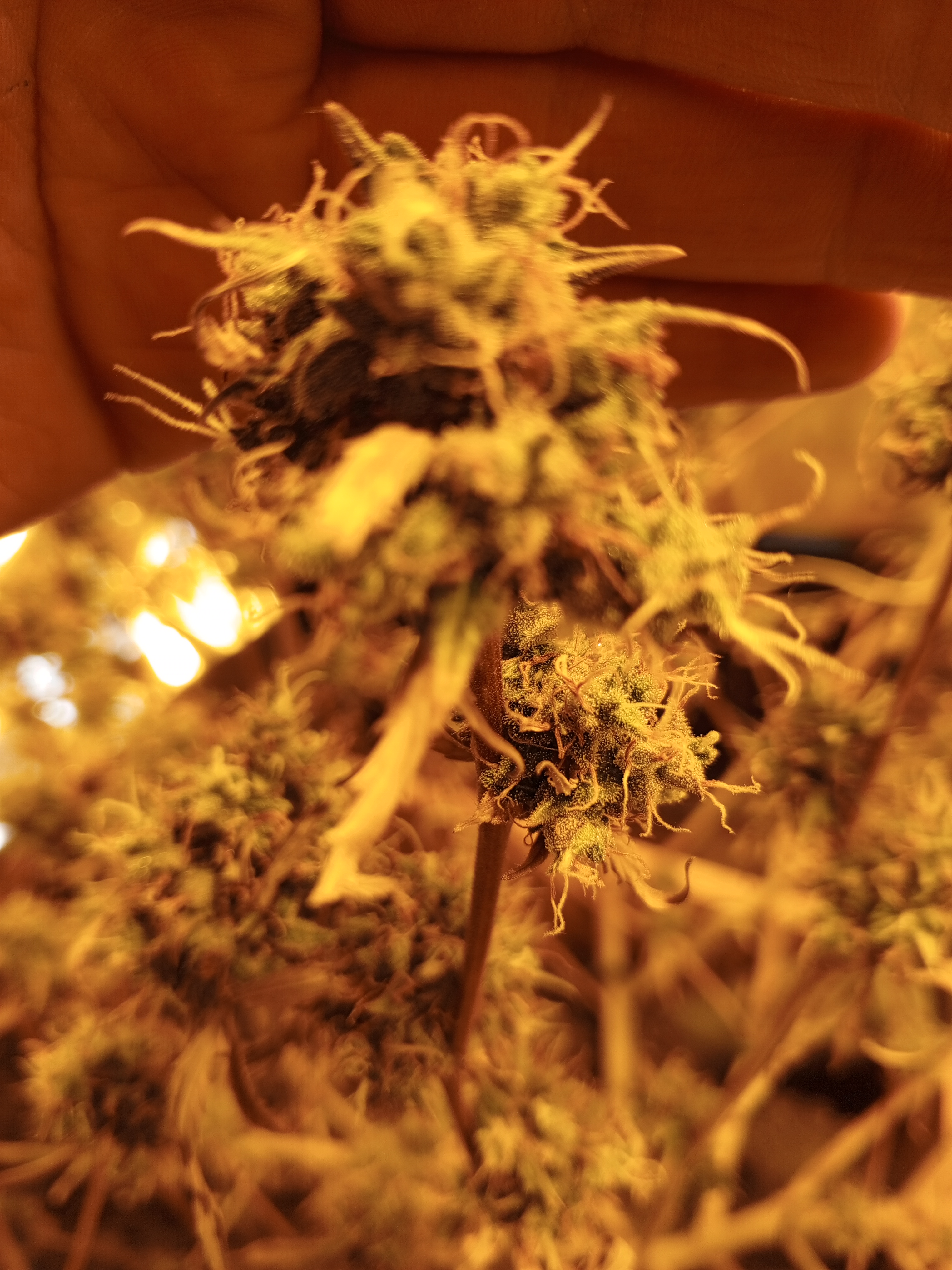 Росла в индоре под Днат400. Зацвела на второй месяц, цвела четыре. За это время я её почти похоронил, оживил, пережила грибных комариков, трипсов, на веге замерзала, перегревалась не единожды. На середине цвета начал подрезать и курить т.к. листья все опали во второй раз окончательно и шишечки перестали цвести и пожелтели. Почти половину скурил, приподнял лампу, и она кааак начала цвести! Таких цветов я не видел, там чашечка на чашечке ёлочкой растёт. Короче за месяц скурил наверное 60-70. И ещё висит сохнет примерно двухлитровая банка. Эффект однозначно хай, но перебрать легко т.к. догоняет позже.