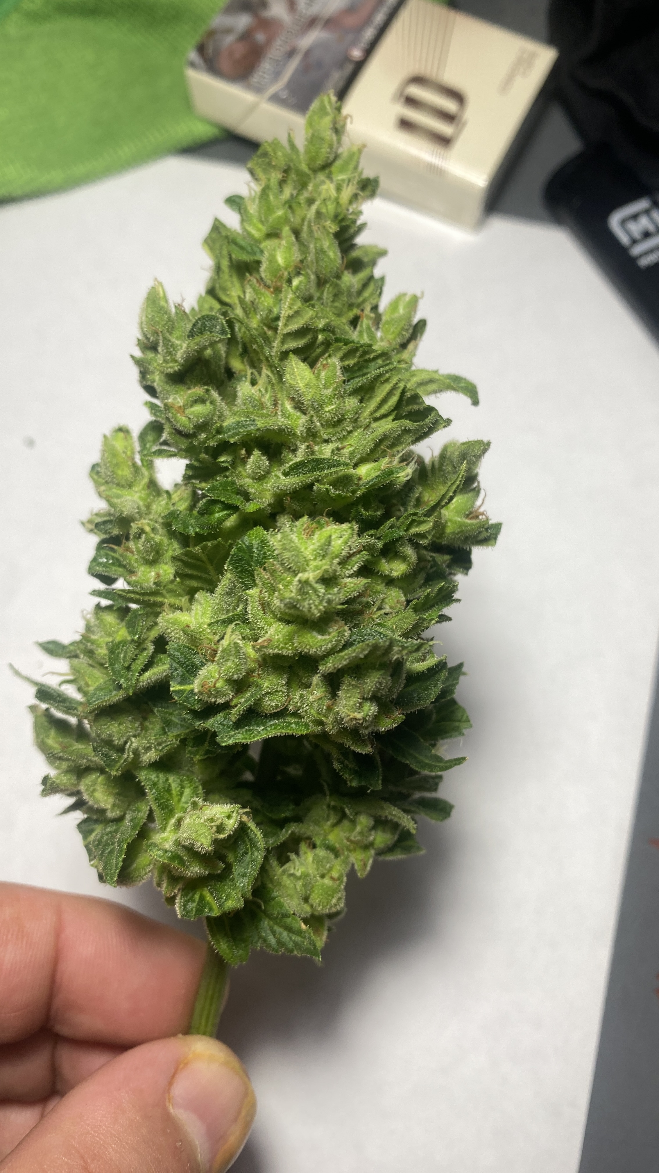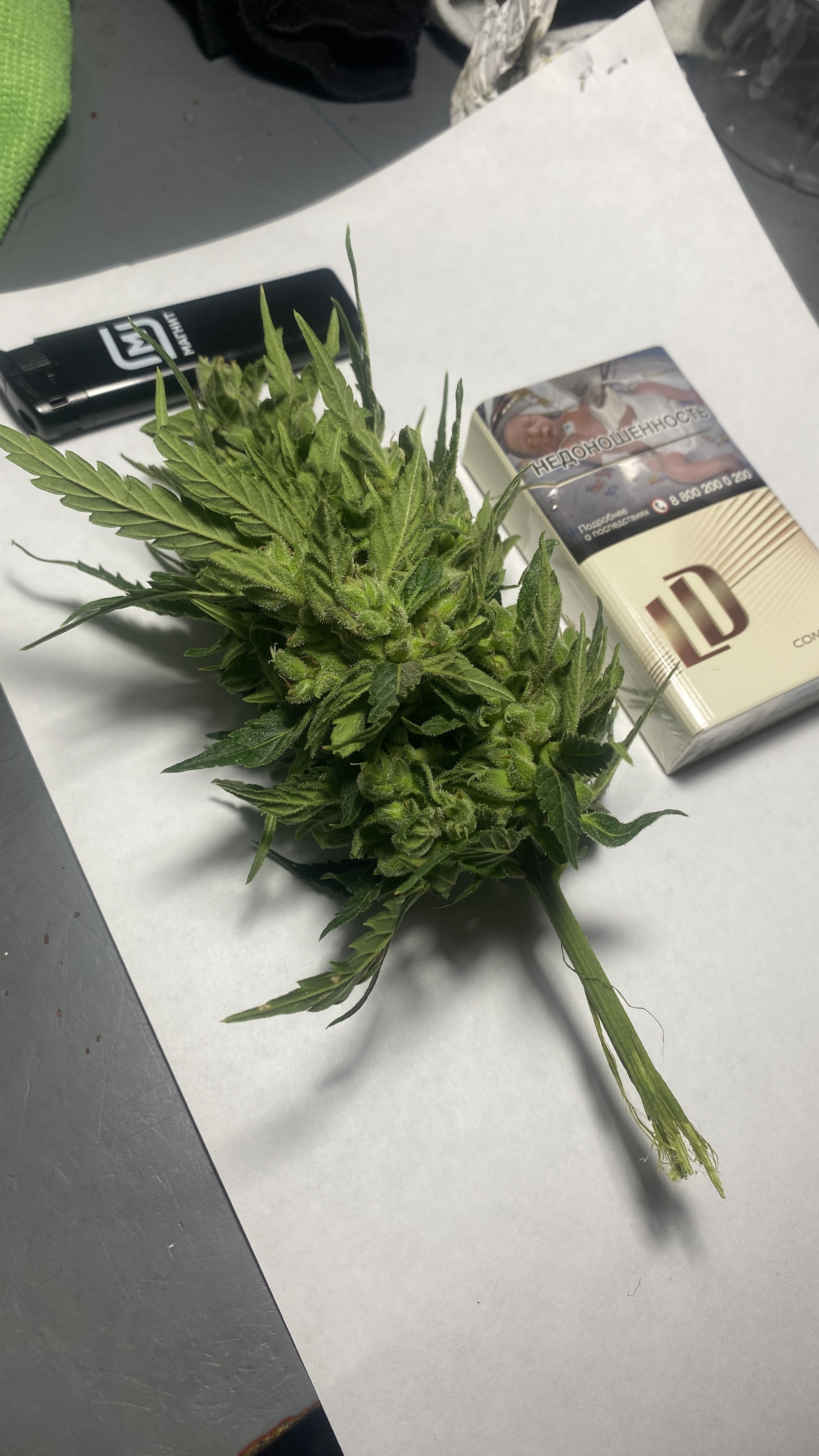 Хоть и срезал раньше срока, тем не менее получил около 20 грамм липких и пахнущих шишек. Сейчас пролечка, но первые пробы уже дают понять, что цветок весьма неплох