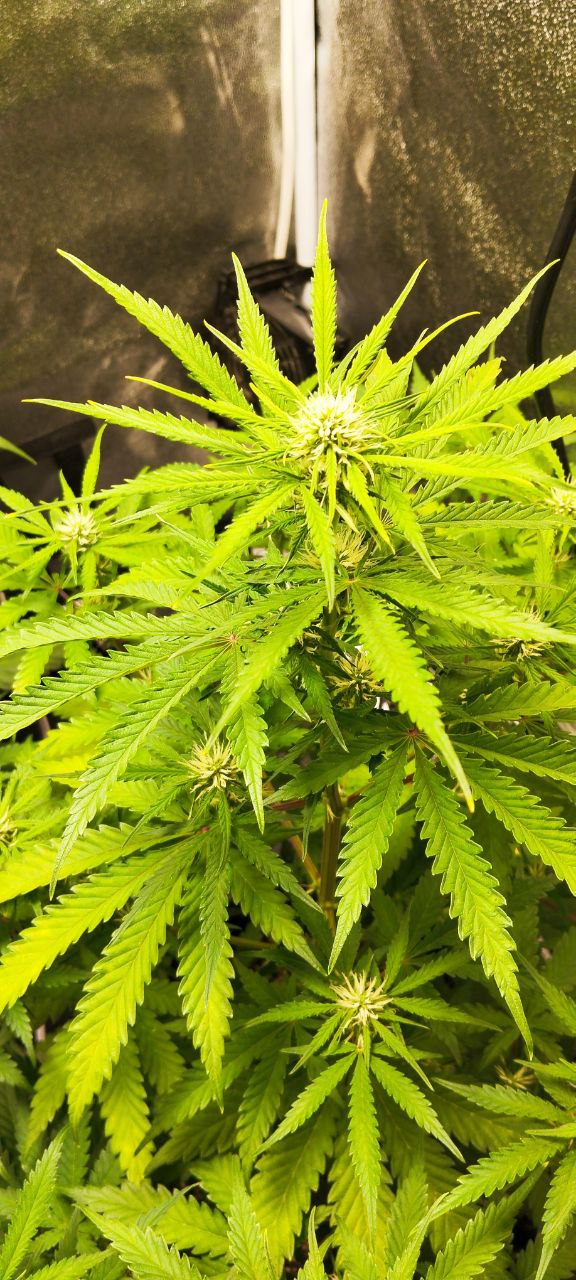 Очень красивое растение. Отличный рост.Шишки сахарные и плотные.Приятный вкус и плавный улет в релакс,с креативными нотками.На фото 65 дней.