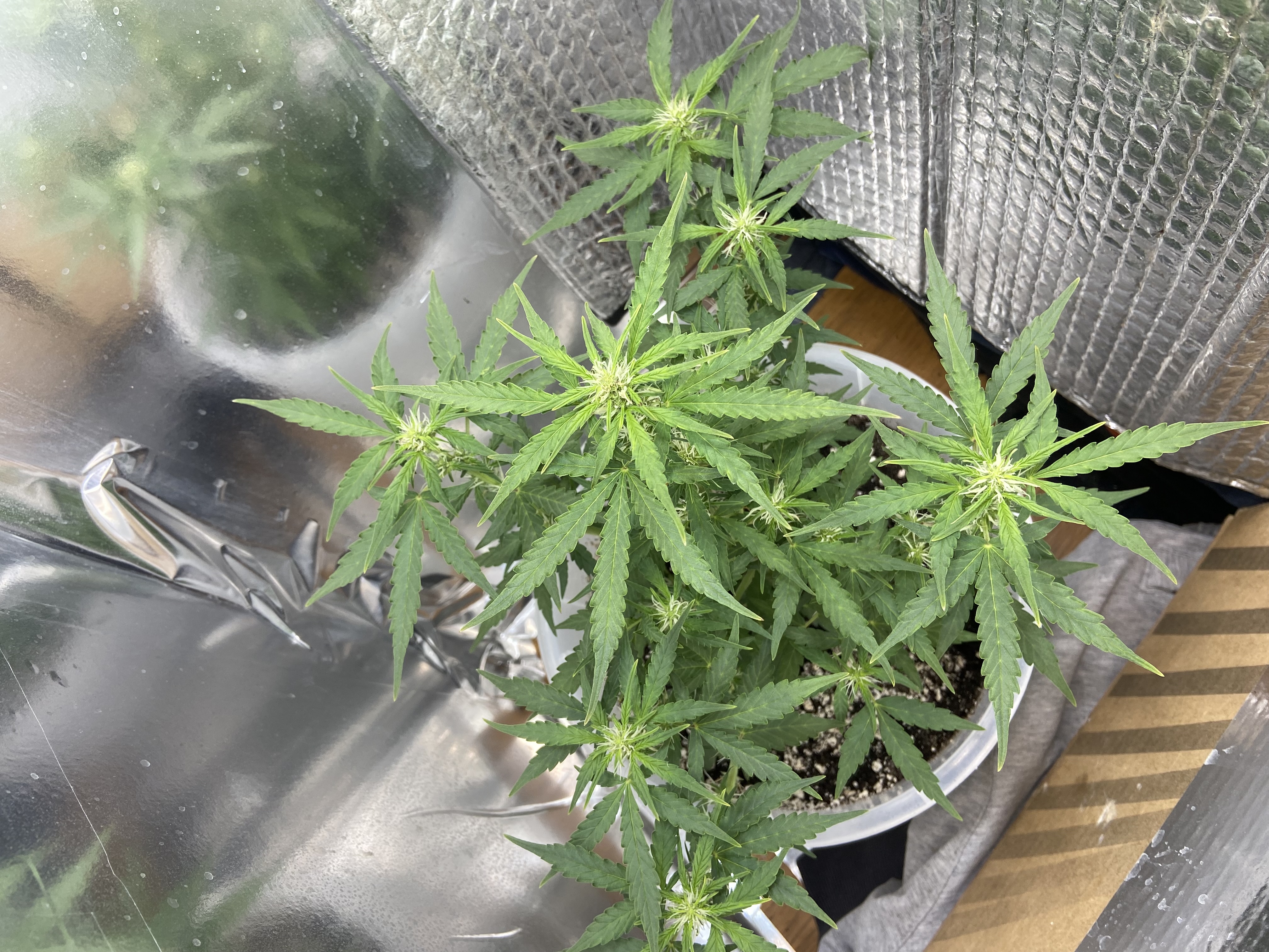 Всем доброго денёчка! Не смог, остаться в стороне. Решил написать. Я уже оставлял, свой отзыв. И фото там-же. Так вот. Сухих голов с того куста 750гр. У вас же, меньше чем на улице, вырастает. Не надо изобретать велосипед! Его уже, изобрели. Хороший цветочный грунт. Прожектора 6500к.Удобрения буйские для цветов. Ну и режим 20/4 в сутки. Не надо, ничего растягивать. Это умные девочки! Они сами, сделают как им надо.